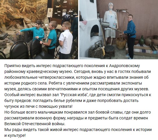[color=#a52a2a;][font=Georgia,serif;]Мы благодарны всем участникам СВО, нашим героям, которые обеспечивают нам безопасность и спокойствие. Двери Андроповского музея для участников СВО всегда открыты.[/font][/color]