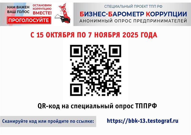 Поделитесь своим мнением – пройдите анкетирование. Получение объективных данных – это первый шаг для позитивных изменений в работе по противодействию коррупции, как в субъектах Российской Федерации, так и в стране в целом!Анкетирование проводится с 15 октября по 7 ноября 2025 года включительно.
