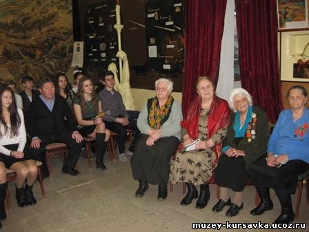 4 марта в преддверии праздника 8 Марта в музее состоялась встреча старшеклассников СОШ №1 с. Курсавка с участницей Великой Отечественной войны Стратийчук Надеждой Михайловной, с труженицей тыла Пенкиной Марией Терентьевной и детьми войны Несмеяновой Любовь Антоновной и Юневой Валентиной Григорьевной.